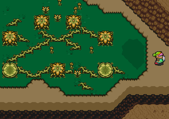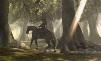 As Link approaches Kasuto Meadow, Link begins to hear a flute like melody being played. Finding this melody curious, Link dismounts off Epona and begins to search for the source of where this melody is coming from. The melody leads Link into a small stream running into the forest, it seems to be louder here. The sound of this flute seems to be directing Link where to go. Eventually Link finds an alcove some distance into the forest. Though by this time, the melody Link could hear before, begins to fade away. "Am I in the lost woods?" Link wonders. In the alcove, Link notices a trail not often used. This trail leads beyond the alcove further into the forest. Link decides to follow this trail.