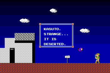 Link feels the best course of action in his state would be to find a town and regain his strength in order to continue in the search of Agahnim. After travelling North, Link reaches the gates of Kasuto town. It appears to lay in ruins, it has been abandoned for quite some time. With the town being destroyed, Link decides to