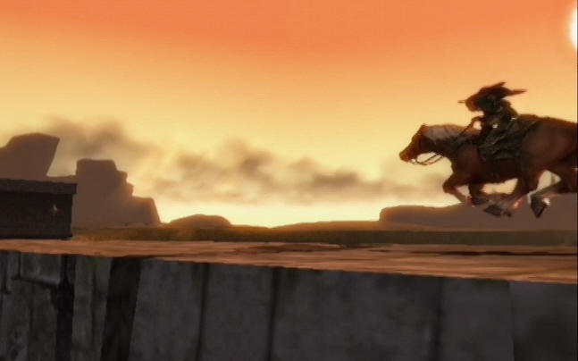 Link falls and lands facing Ganondorf, Ganondorf turns around and speaks.